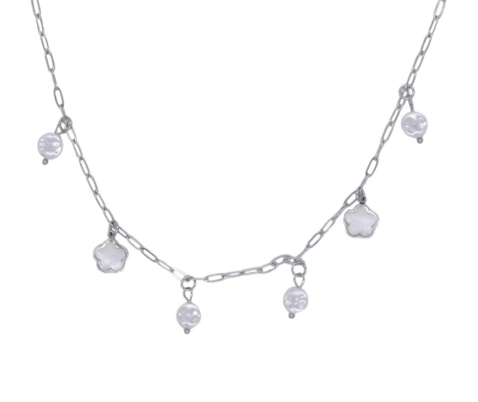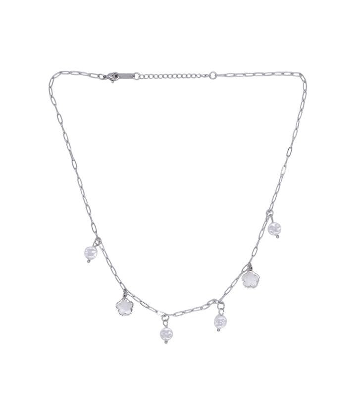 Generic - قلادة متدلية من الستانلس ستيل بدلاية على شكل زهرة ولؤلؤ للنساء - فضي