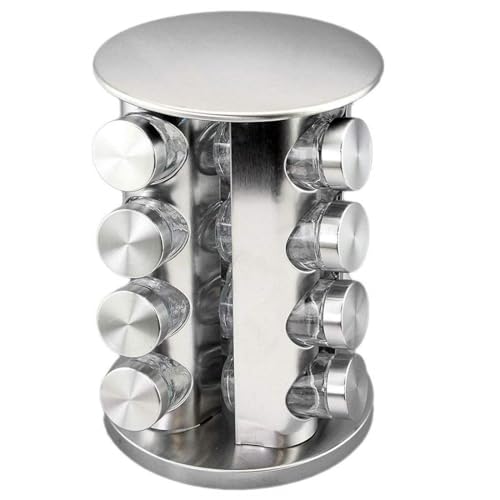 generic - رف توابل دوار من الستانلس ستيل، 16 مرطبان، فضي، منظم مطبخ