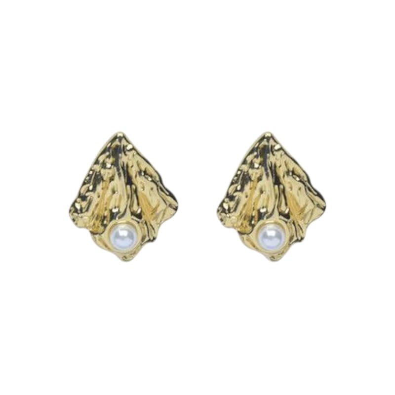 Generic - Stainless Steel Scallop Shell Stud Earrings For Women, 2 Pieces - Gold