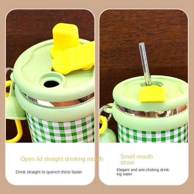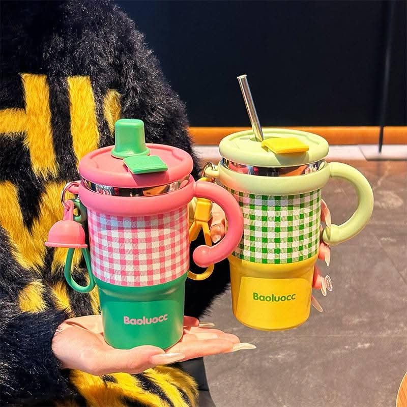 Generic - Stainless Steel Thermal Mug 600ml,with Handle Lid and Straw Insulated Coffee Cup,Ice Coffee Mug