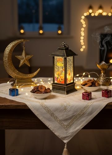 - While designed for Ramadan, its classic vintage aesthetic allows it to transition beautifully into year-round shelf styling, high-transparency panels ensure the intricate internal scene and warm glow are visible from every angle of the room.
