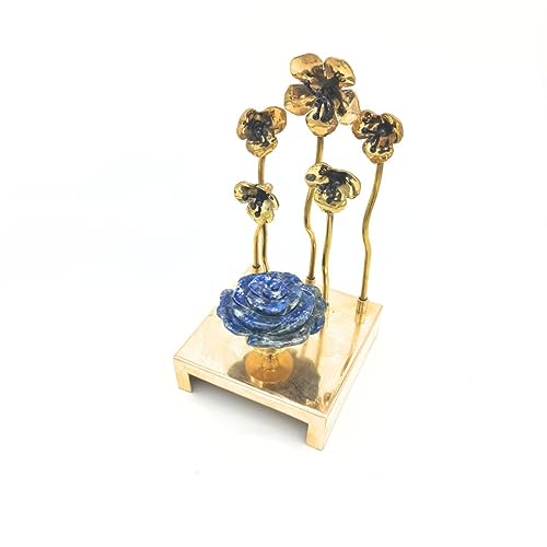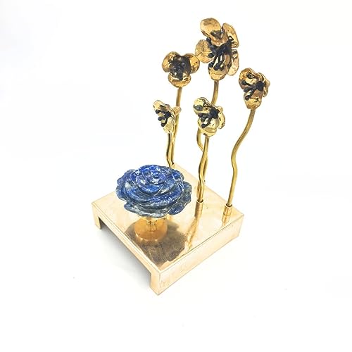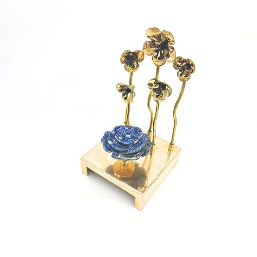 Stonescence - Crystal and Egyptian Brass-Lapis Lazuli Flower Carving