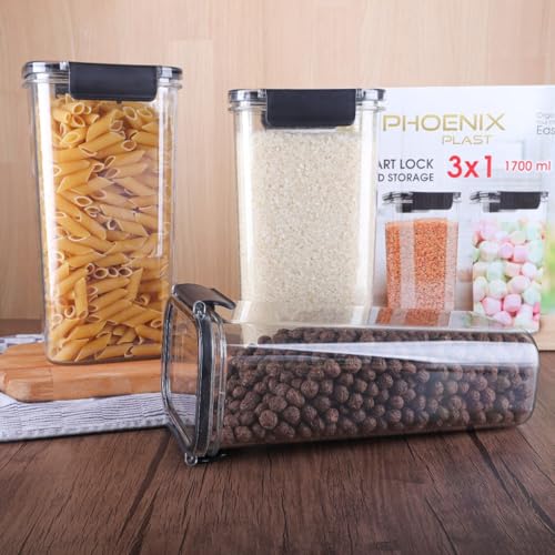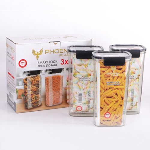 Storage Container Set of 3-1700 ml Each - Pure Acrylic Material with Airtight Lid Q