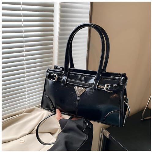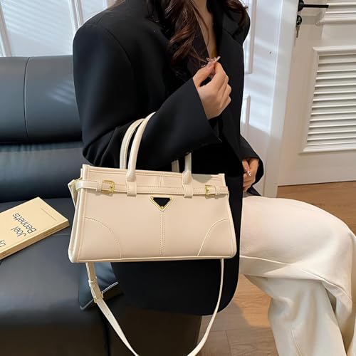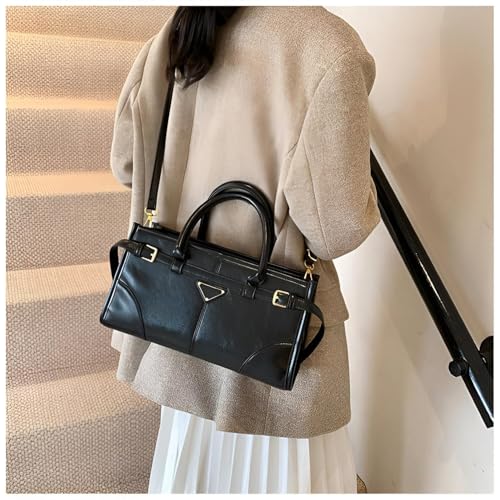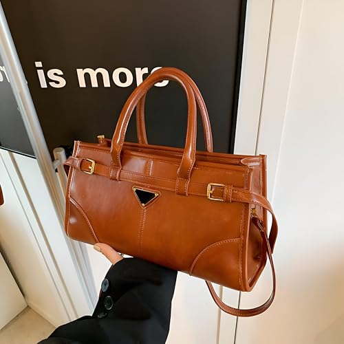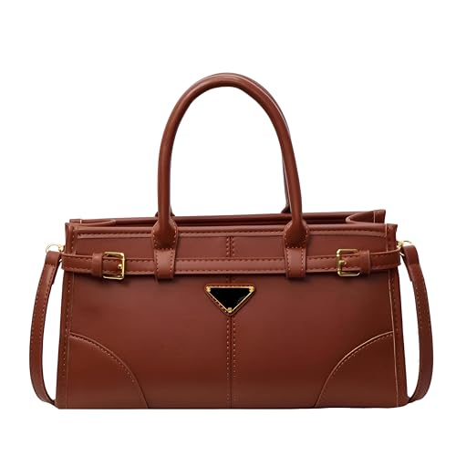 Generic - Structured Handbag - Elegant Brown Faux Leather Satchel with Gold Hardware, Double Handle Tote Featuring Adjustable Shoulder Strap and Unique Triangle Logo Design for Versatile Style