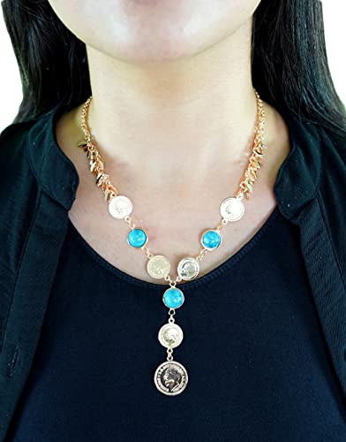 Generic - عقد ذهبي أنيق مرصع بأحجار زرقاء, ذهبي, One Size، للبنات