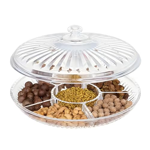 Generic - صينية تقديم أنيقة متعددة الاستخدامات من الأكريليك – لتقديم التسالي، المكسرات، الحلويات، المقبلات والفواكه – 6 أقسام مع غطاء شفاف
