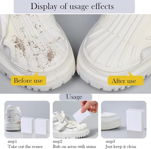- The usage method does not require wet water or cleaning solution. Simply use an eraser to rub the stain on the shoe surface until it is clean