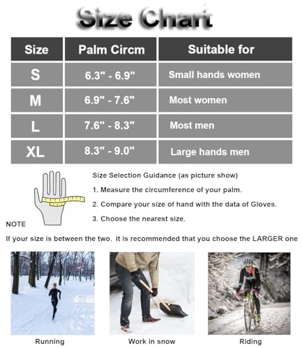 - No Risk to Buy - 4 sizes fit well for men’s and women’s hands, you can easily get a moderate size according to our size’s chart. Our mens winter gloves provide 12 months and 7/24 hours friendly customer services. If you have any question or not satisfied with it, please feel free to contact us, we will reply you in 24H.