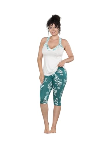 Generic - Summer Pajama Set For Women Plaid Suspenders T-shirt And Bermuda Pants Cotton Material
