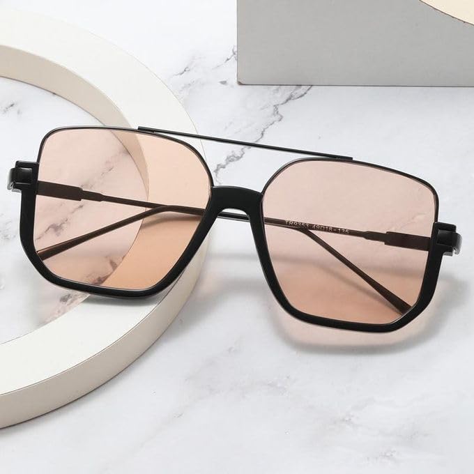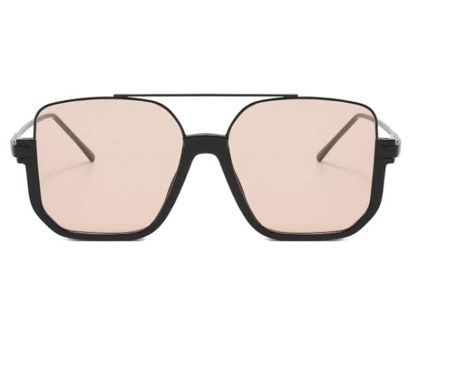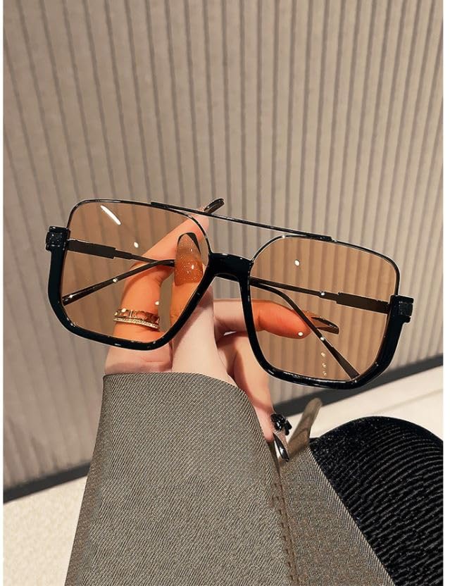 Generic - نظارات شمسية صيفية نصف اطار للنساء والرجال باطار مربع كلاسيكي بجسر مزدوج، أسود