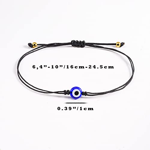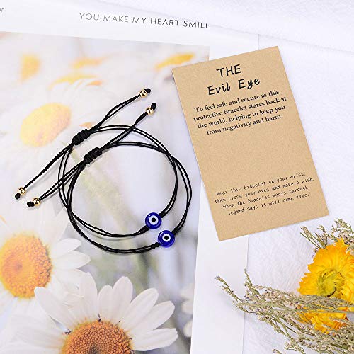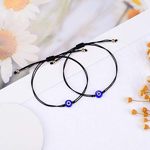 SUNSH - سوار بخرزة العين الزرقاء وبخيط أحمر/أسود قابل للتعديل ومقاوم للماء ومع كرت أمنيات، مجوهرات للحظ السعيد للنساء والمراهقات والأولاد والأزواج والأصدقاء والأم والابنة من صنش، قطعتان
