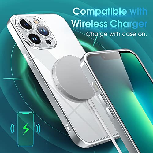Supdeal - جراب حماية شفاف بتصميم نحيف من السيليكون الناعم لموبايل ايفون 13 برو ماكس، مضاد للاصفرار مع حماية للكاميرا من سابديل، لون فضي، مقاس 6.7 بوصة