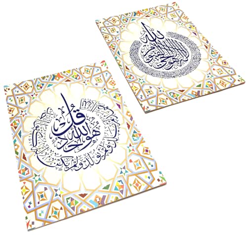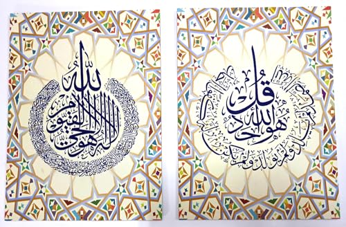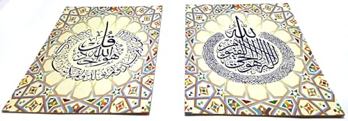 Generic - طقم براويز تابلوات ديكور عدد اثنين من الخشب SURAT QURANIA الفالك و AYAT الكرسي لون ابيض و ازرق و زينة اسلامي