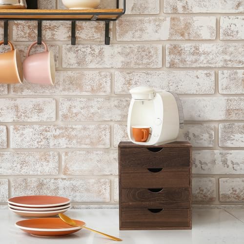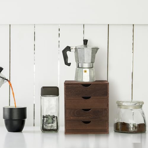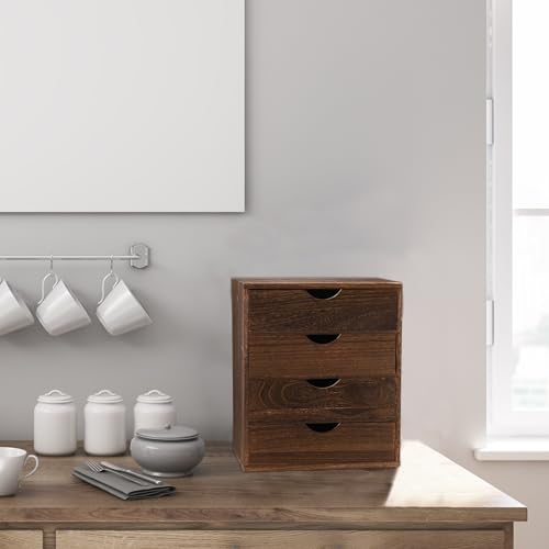 Suzile - Suzile Coffee Pods Storage Holder Cabinet Vintage Countertop Storage Drawers Wooden K Cup Organizer Under Brewe for Home Office Accessories(4 Drawer)