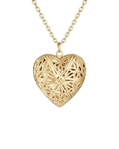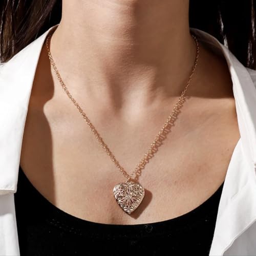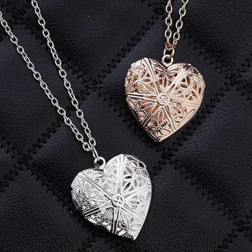 Generic - Sweet Peach Heart Love Chain Necklace for Woman Hollow Engraved Opening and Closing Heart Shaped Photo Box Pendant Collar