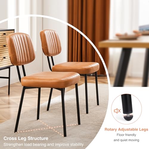 Sweetcrispy - Sweetcrispy Dining Chairs Set of 6, Upholstered Mid Century Modern Kitchen Dining Room Accent Chairs with Faux Leather Cushion Seat & Metal Legs for Kitchen, Living Room - Brown