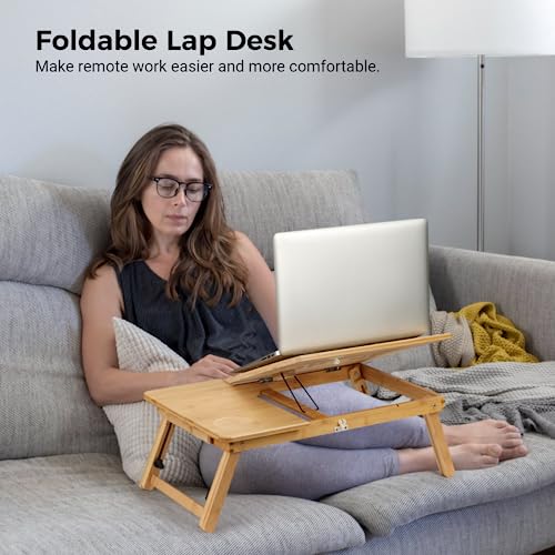 - 【Natural Bamboo Construction for Sturdiness】 Crafted from eco-friendly bamboo, our aesthetically pleasing and functional laptop desk offers exceptional durability and stability that can be used for years to come. And with natural bright wood grain, it looks good in a minimalist home or office.