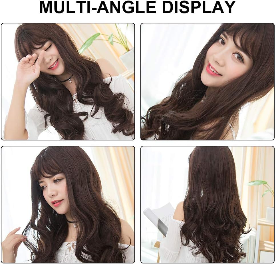 Generic - باروكة بشعر صناعي وقصة مائلة وشعر كيرلي مموج كبير وكثيف، باروكة قابلة للتعديل وجيدة التهوية (لون بني غامق)