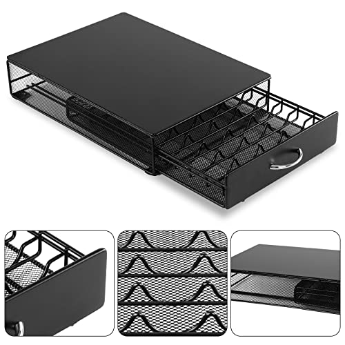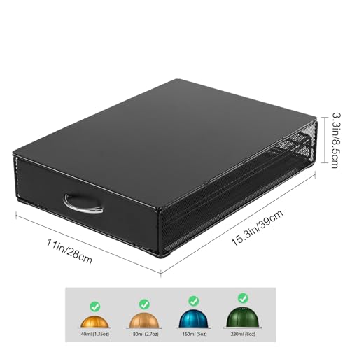 SYSYLY - Coffee pod holder, capsule storage drawer holder compatible with Nespresso Vertuo capsules, dispenser pod storage 40 capsules, metal, black.