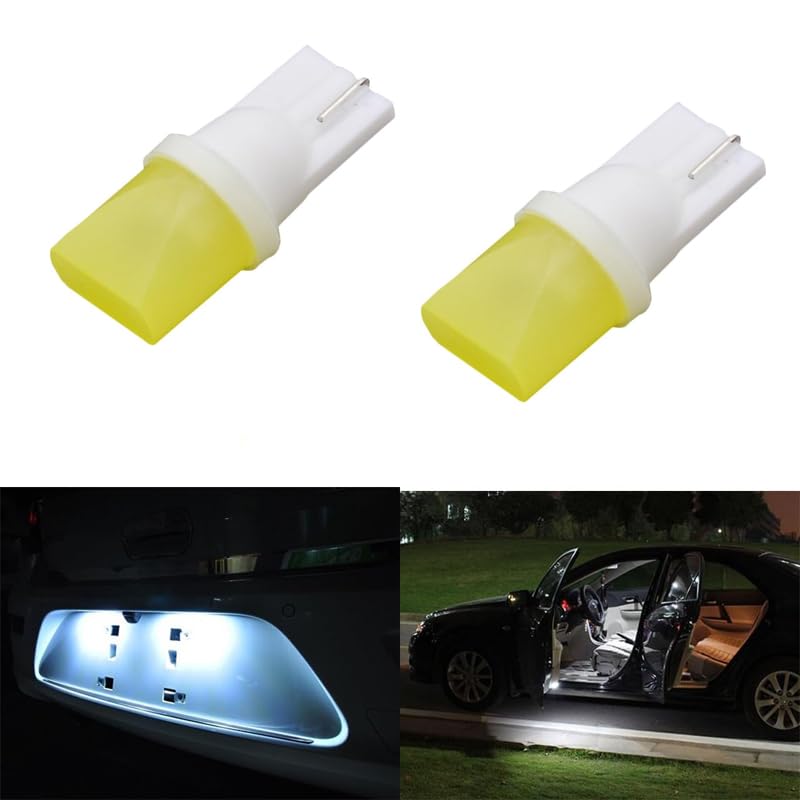Generic - طقم مصابيح إضاءة LED داخلية ساطعة بقاعدة إسفينية نوع T10 ، لمبات إشارة جانبية للسيارات، لمبات بديلة لإضاءة لوحة ترخيص السيارة ( COB chip اضاءة ابيض ، 2 قطعة ) - من كابر تريد