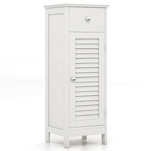 Tangkula - خزانة تخزين خشبية قائمة بذاتها مع درج وباب غالق واحد للحمام، مع رف قابل للتعديل وتركيبات مضادة للانقلاب للمكتب المنزلي من تانجكولا، 33 سم × 30 سم × 88 سم (أبيض)