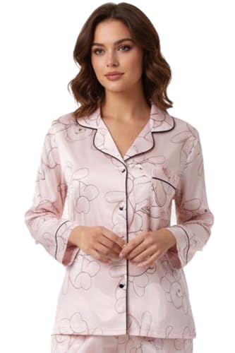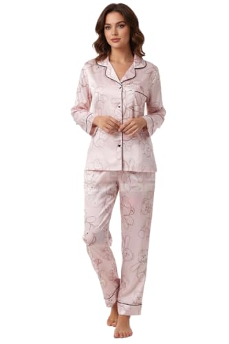 TE BIANCO - بيجامة بتصميم كرتوني لطيف | الخامة ساتان ناعمة وحريرية | تصميم أزرار أمامية | قطعتين ( بلوزه ، بنطلون ) | موديل Z875 من TE BIANCO