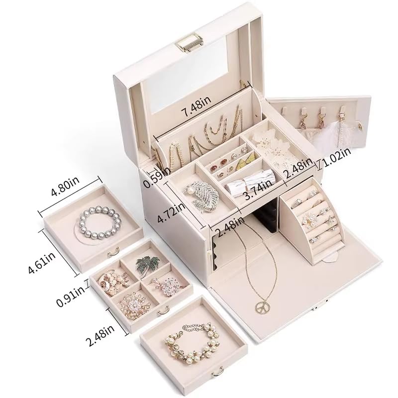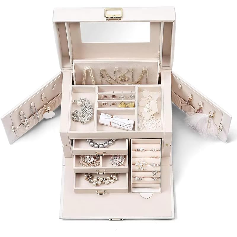 - 🧰 Spacious Drawers & Compartments – Multiple sections and deep drawers for easy organization of large jewelry collections.
