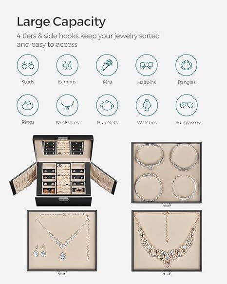 - 💍 Big Lockable Jewelry Organizer – Extra-large design with secure lock to protect all your rings, necklaces, bracelets, and earrings.