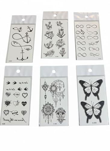 Generic - ملصقات وشم مؤقتة، 6 قطع، تصاميم متنوعة فراشات وريش وأحلام وشفاه وزهور، فن الجسم (انفينتي)