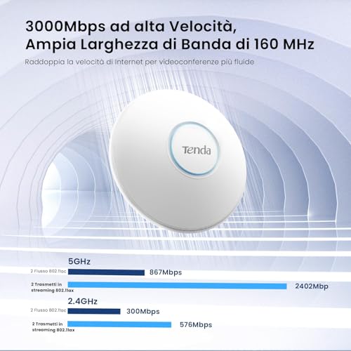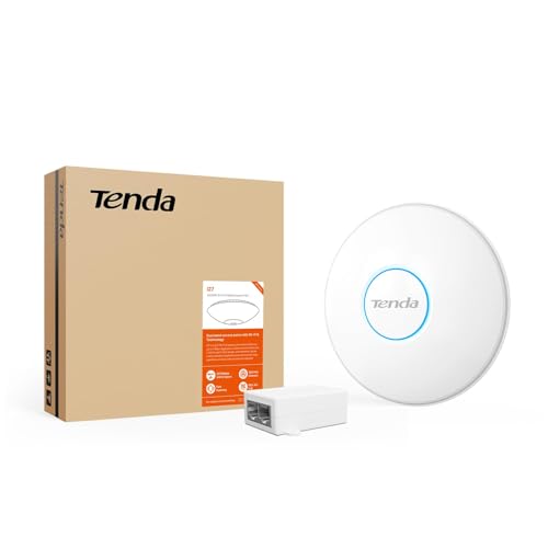 Tenda - تيندا نقطة وصول مزدوجة النطاق I27 واي فاي 6 AX3000 تدعم معيار PoE 802.3at، حامل سقفي، دوران، MU-MIMO، OFDMA، SSID، واجهة تطبيق او ويب، ابيض