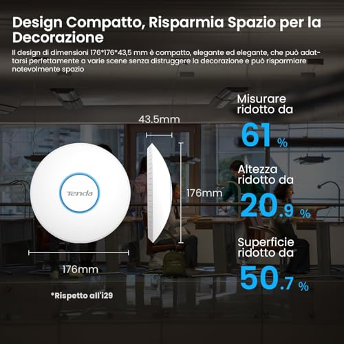 • تصميم مضغوط: القطر 176 × 43.5 ملم، تصميم مضغوط، سهل التركيب وموفر للمساحة. مظهرها الأنيق يجعل نقطة الوصول مثالية لأي مكتب أو فندق أو مقهى أو منزل دون المساس بالديكور