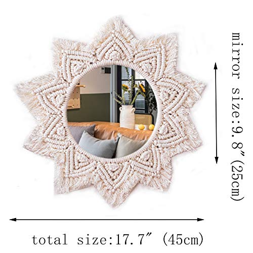 TENEWEE - Boho Wall Mirror Decor Macrame Wall Hanging for Bedroom Decor