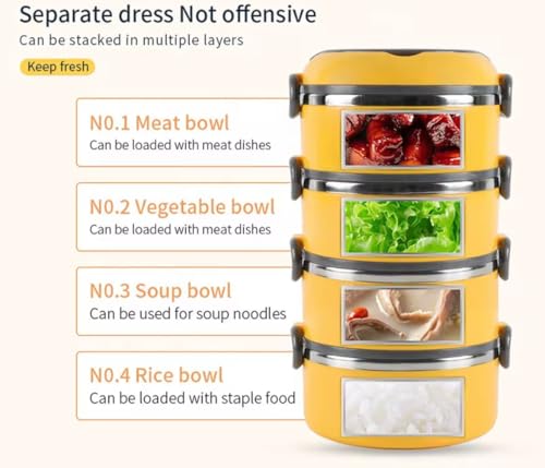 - MULTIPLE LAYERED DESIGN: The 4 separate layers stainless steel lunch box allows you to organize your different meals and keep them separately and tidy