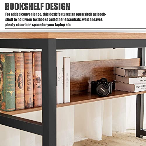 TOPSKY - مكتب كمبيوتر سميك مع رف كتب/ غطاء كابل بفتحة معدنية 1.18 بوصة من توبسكي، (55 بوصة، لون طبيعي)، بيج