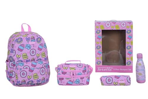 Toretto - Toretto 4-Piece School Backpack Set – Model M2223 – Includes Backpack, Lunch Bag, Water Bottle & Pencil Case – Ideal for Kids