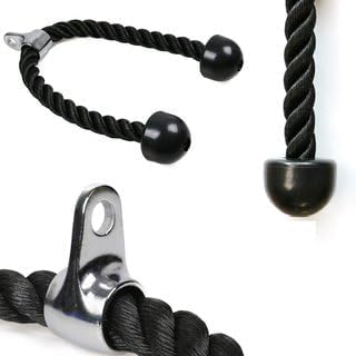 TOTAL SPORTS & FITNESS - Total Nylon Tricep Rope 27 Inch – Gym Cable Attachment for Triceps Pull Down, Biceps Curl, LAT Pulldown & Strength Training – Black Ergonomic Grip for Workout Machine & Home Gym Use