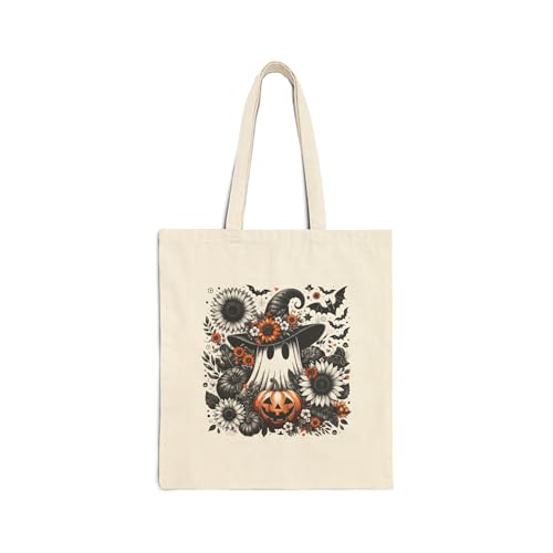 Generic - Tote Bag - Beige Canvas Zipper Bag Spooky Ghost Halloween Pumpkins Floral Tote Bag With Zipper