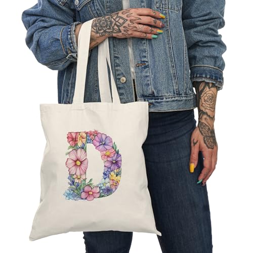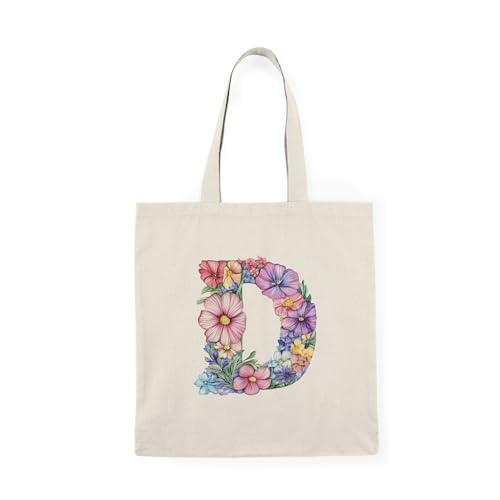 Generic - Tote Bag - Canvas Zipper Bag – Floral & Floral Letter D Design – Printed Shopping & Outdoor Shopping Bag – Lightweight, Durable & Eco-Friendly for College Gift