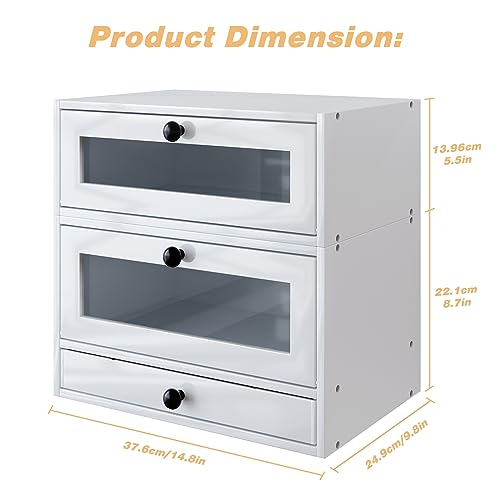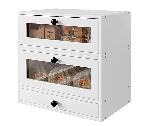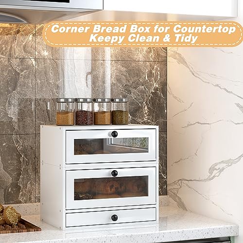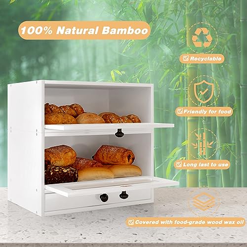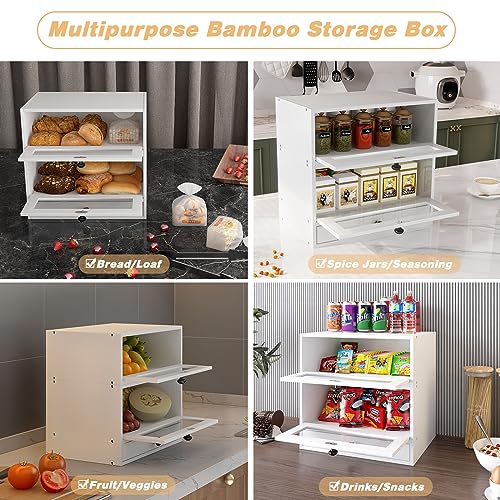 TQVAI - TQVAI Bread Box for Kitchen Countertop, Bamboo Bread Storage Container, 3 Tier Large Bread Bin with Window & Silverware Tray - Assembly Required, White