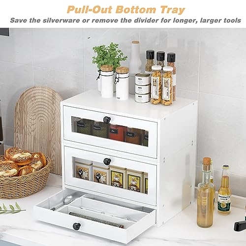 - MATCH SILVERWARE DRAWER TRAY - To provide maximum convenience, we have included a pull-out silverware drawer tray that perfectly fits into the bottom tier. This extra space allows you to keep your silverware organized and easily accessible when enjoying your bread or cakes. designed with a convenient window that keeps your bread fresh and delicious for days. The classic yet chic design perfectly complements any kitchen style, making it an essential addition to your baking routine.
