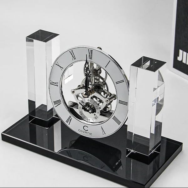 Generic - ساعة طاولة بتصميم هيكل عظمي شفاف، 20 × 17 سم، تقف على قاعدة اكريليك سوداء لامعة، مما يمنحها لمسة فاخرة ومميزة.