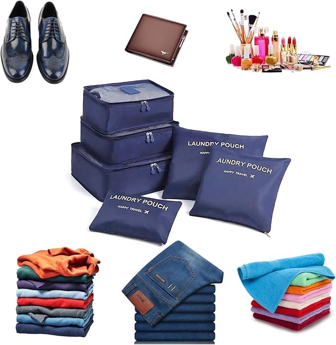 - COMPLETE 6-PIECE SET: Includes 3 packing cubes in different sizes and 3 laundry pouches to keep your luggage organised and separate clean clothes from dirty items during travel
