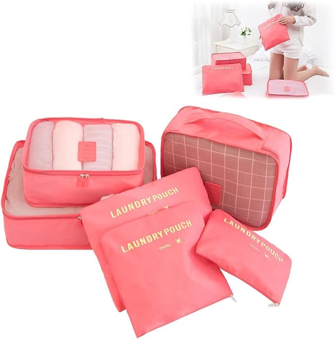 Generic - Travel Packing Organizers Set, 6 Piece Luggage Cubes with Laundry Pouches (PINK)