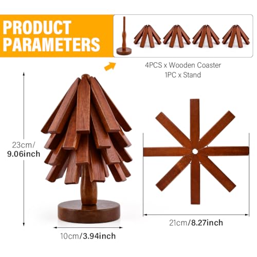 - 【PACKAGE CONTENT】You will receive 4pcs/3pcs(optional) wooden coasters and 1pc storage stand(round base), each coaster about 21cm/8.27inch in unfolded diameter, enough quantity for your daily use.