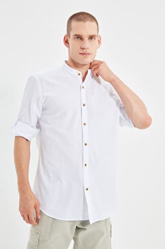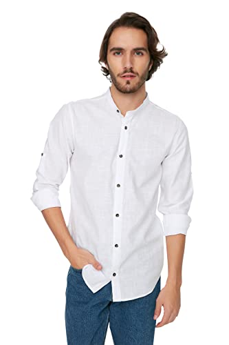 Trendyol - قميص بيسيك بقصة ضيقة سليم فت وأكمام طويلة وكتافة موديل TMNSS20GO0188 للرجال من تريندول
