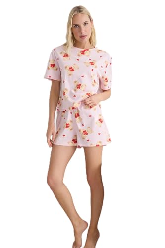 Trendyol - Trendyol Woman Pink-Multicolored 100% Cotton Teddy Bear and Heart Knitted Pajama Set THMSS25PT00211 Pajama Set