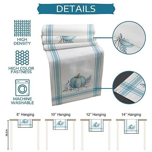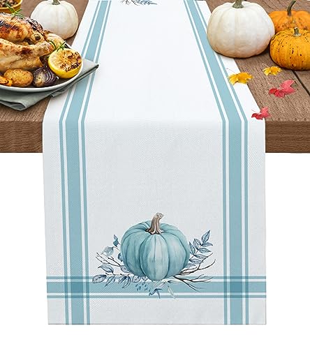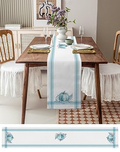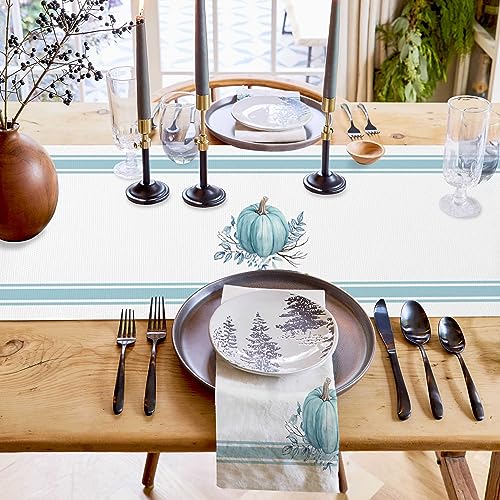 TweetyBed - Fall Thanksgiving Table Runner Pumpkin Leaf Branch Runners for Dining Tables Teal Stripes Autumn Dinner Runner Kitchen Parties Decor 13" x 90"