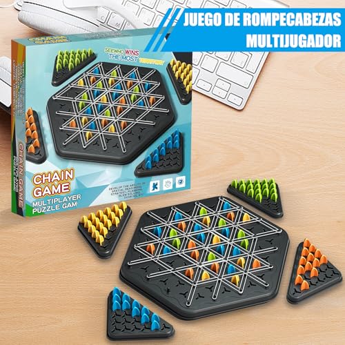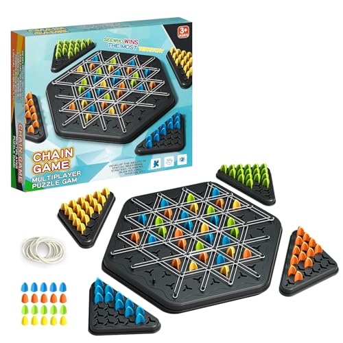 - EDUCATIONAL TOY The chain triangle chess game is a fun puzzle strategy game that develops both fun and a variety of skills such as spatial reasoning, strategy, planning, problem solving and logical thinking. Players can improve critical thinking, problem solving, and strategic planning skills while competing in friendly ways. In addition, the game promotes social interaction and teamwork between players.