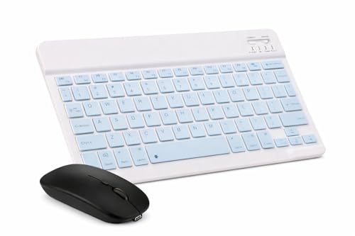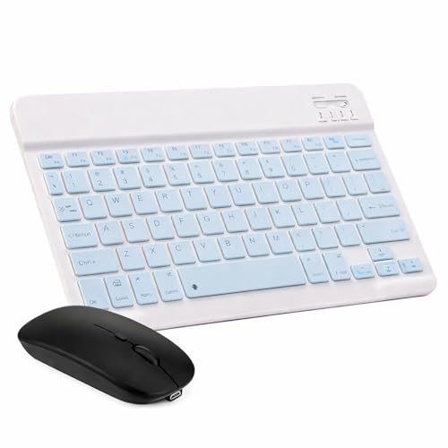 - Ultra-Slim Small Bluetooth Light Blue Keyboard and Mouse Combo Portable Rechargeable Wireless Keyboard Portable