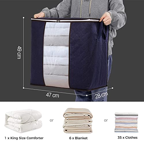 None-branded - شنطة تخزين تحت السرير سعة 90 لتر، سعة كبيرة مع مقابض معززة ونافذة شفافة، مصنوعة من قماش سميك للألحفة والبطانيات وأغطية السرير، قابلة للطي مع سوستة قوية، عبوة واحدة، أزرق كحلي.